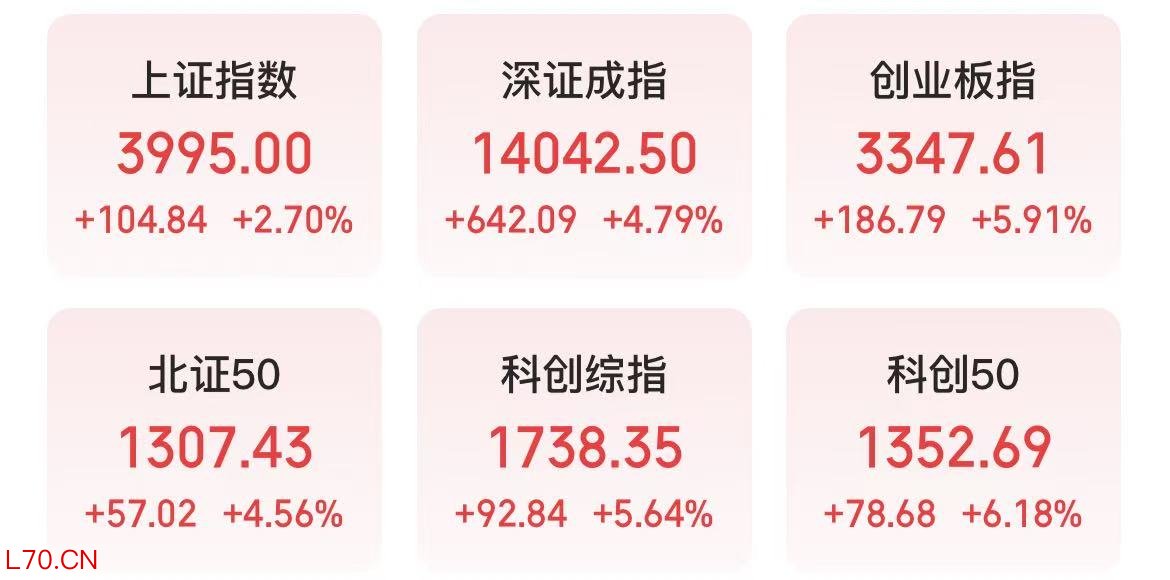 受美伊双方达成临时停火协议的重大利好提振,4月8日,亚太股市迎来全线反攻,A股市场放量大涨,科技成长股强势领涨。截至收盘,上证指数大涨2.7%,报3995点;深证成指涨4.79%,报14042.5点;创业板指涨5.91%,报3347.61点;科创50涨6.18%。全市场超5100只个股上涨,合计成交约2.45万亿元,较前一交易日显著放量。