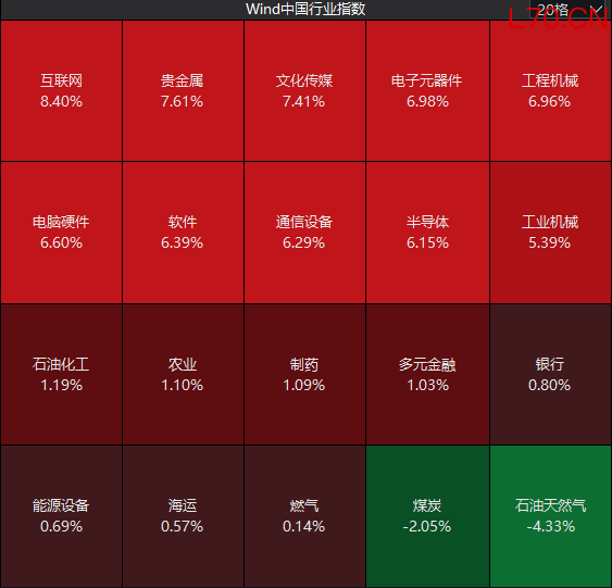 全市场超5100只个股上涨,其中135只个股涨停,连续两日超百股涨停。沪深两市成交额2.43万亿元,较上一个交易日放量8201亿。